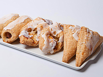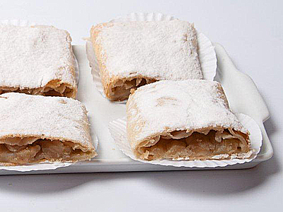 Massa strudel recheada com maçã ou banana. Também disponível na versão Diet.
