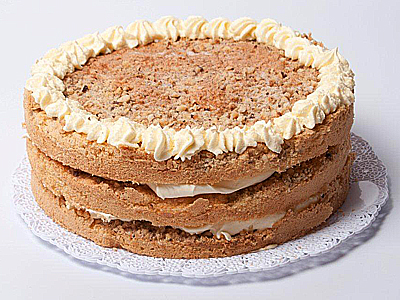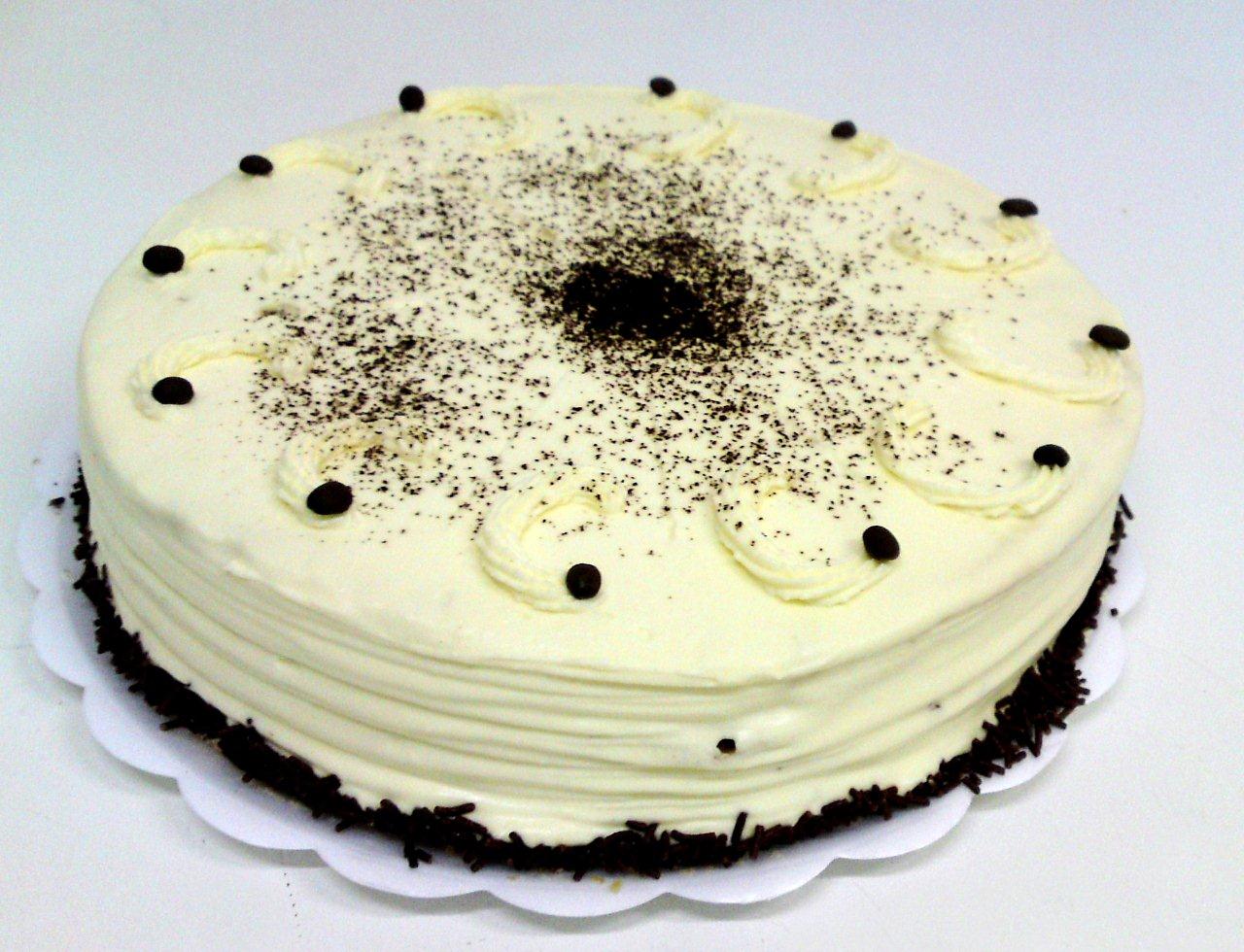 Massa pão de ló umedecida com calda de café e recheada com creme de café.