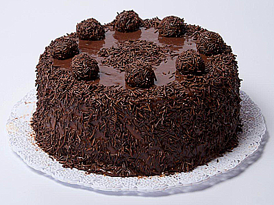 Massa de chocolate com recheio e cobertura de brigadeiro.
