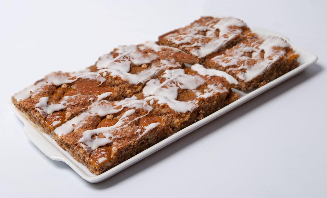Massa especial de nozes pecã recheada com damasco e leite condensado com nozes pecã.