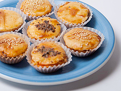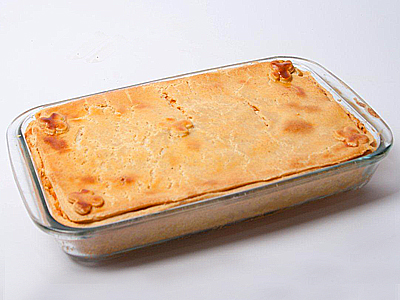Bolo assado de casquinha de massa flora com recheio de queijinho. Também disponível com passas.