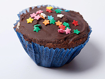 Bolinho de chocolate com cobertura de chocolate. Sob encomenda com decoração especial.