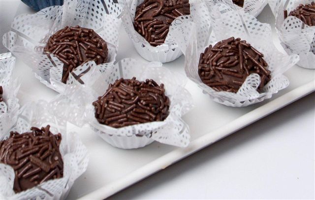 Brigadeiro, beijinho, casadinho, moranguinho, cajuzinho e coco queimado.