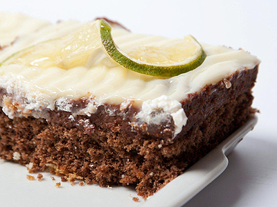 Massa de chocolate com ganache e creme de leite condensado com limão.